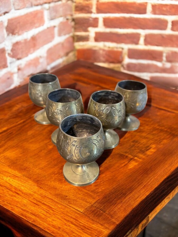 Vintage Tarzı Metal Tepsi ve Kadeh Seti (8 Kadeh + 1 Kase)